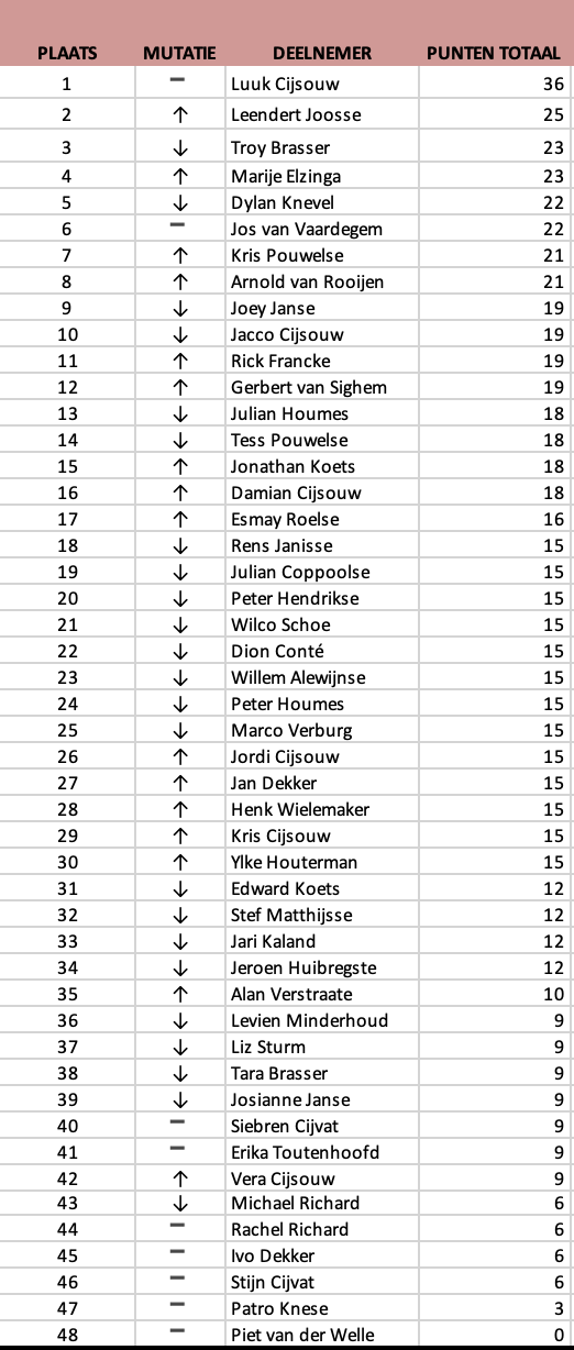 6e Tussenstand: